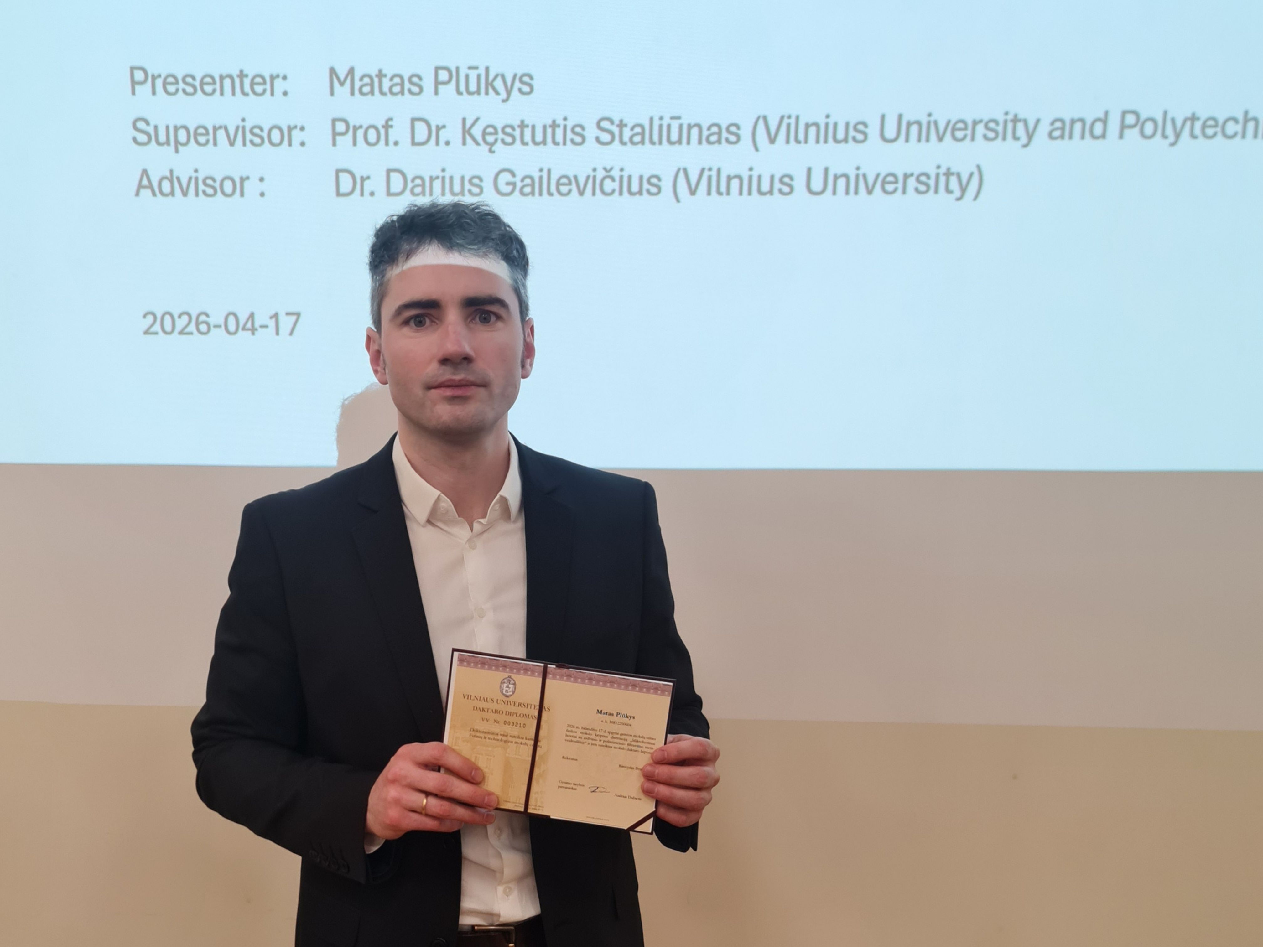 Balandžio 17 d. Matas Plūkys apgynė disertaciją „Mikrolustiniai lazeriai su erdvinio ir poliarizacinio filtravimo meta-veidrodžiais” (angl. Microchip Lasers with Spatial- and Polarization-Filtering Metamirrors). Mokslinis vadovas – prof. dr. Kęstutis Staliūnas, mokslinis konsultantas – dr. Darius Gailevičius.