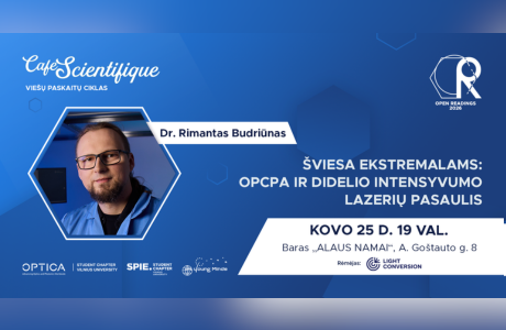 Studentų organizacija „Open Readings“ kviečia į penktąją sezono „Café Scientifique“. Kovo 25 dieną dr. Rimantas Budriūnas, VU fizikas pasakos apie vieną svarbiausių Lietuvos lazerių mokslo pasiekimų – OPCPA technologiją.